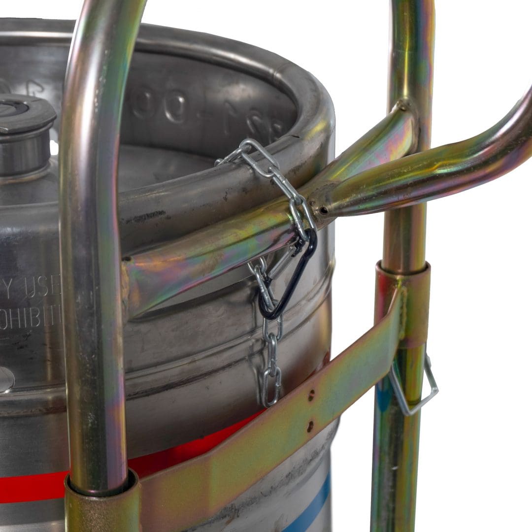 Keg Mover är tillverkad av en stålram som har zinkbelagts och är giftfri, denna beläggning skyddar stålet från oxidation under betydligt längre tid än färg. Med tiden kommer din kärra inte att flisa eller försämras.